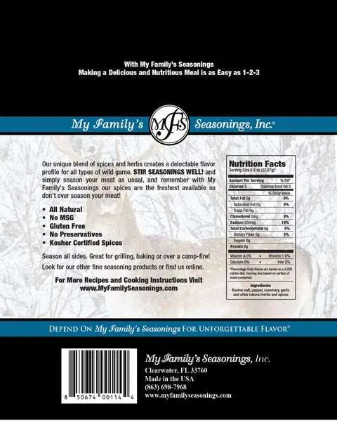 One package of 3.6 oz My Family's Wild Game Beef covers about 25 lbs of meat.