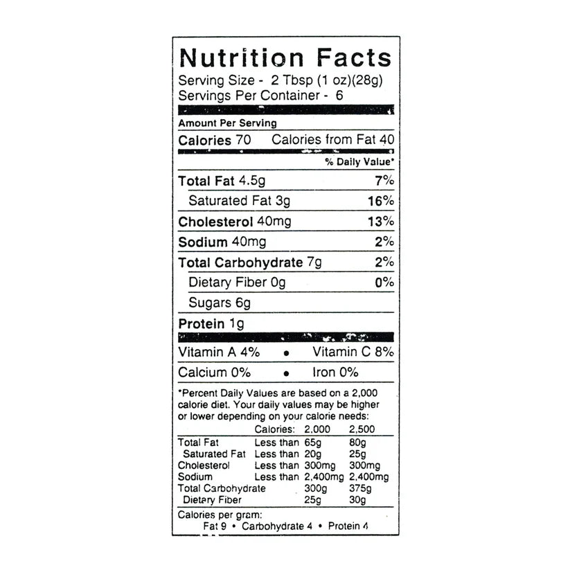 Ingredients: Key Lime juice, sugar, butter (from milk), whole eggs